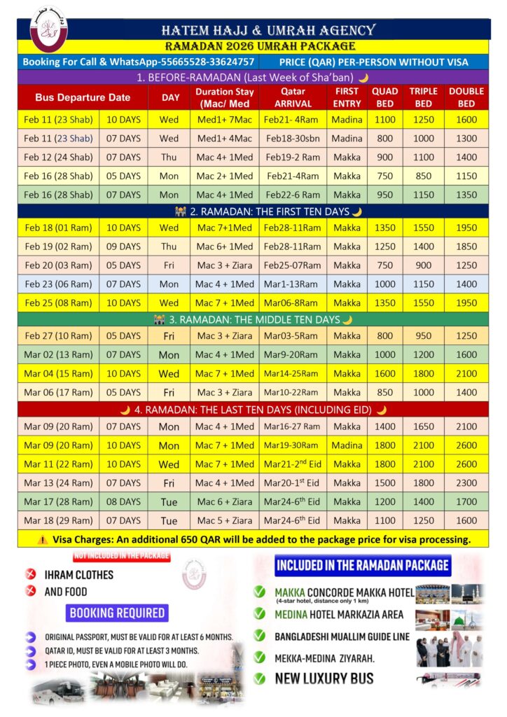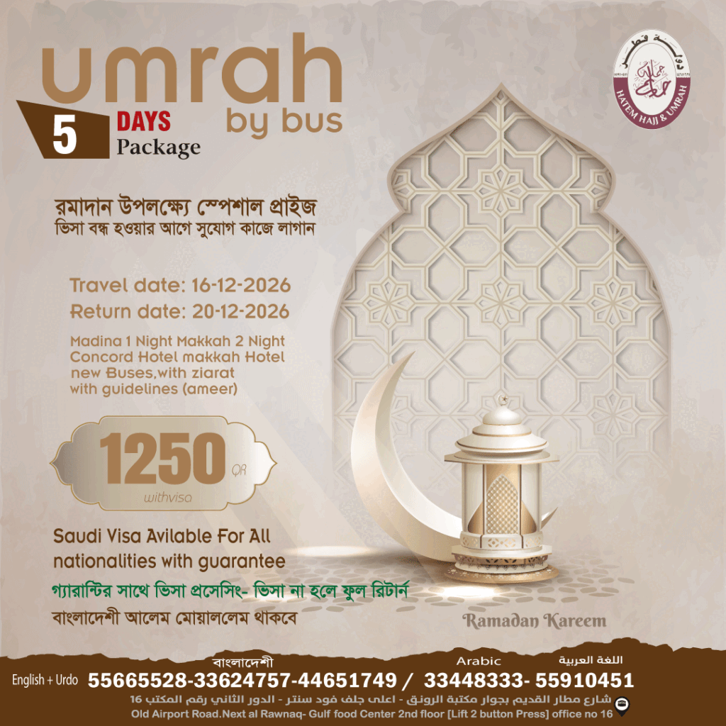 Umrah Every Monday 5 days-Every Wednesday 10 days Package